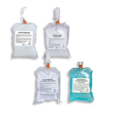 The 800ml foam soap refill range. Each refill comes with its own pump. Foam soap makes sure you are able to lather your hands has foam has more coverage.